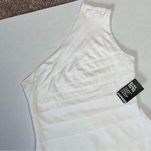 NWT Express White One Shoulder Fitted Sleeveless Bandage Style Dress Size Large