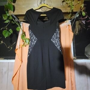 NWT Express Women's A-line Black & White Lace Details Bodycon Mini Dress Size 6