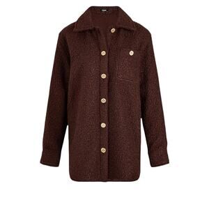 NWT Express Women's Brown Fuzzy Teddy Gold Button Down Shirt Jacket Size XL