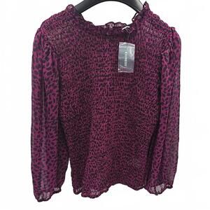 NWT Express Womens M Purple Cheetah Leopard Sheer Smock Long Sleeve Blouse
