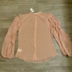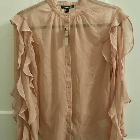 Elevate your style with this elegant pink ruffle top from Express. Perfect for any occasion, this top adds a touch of sophistication to your wardrobe.