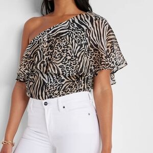 Rachel Zoe Animal Print One Shoulder Bodysuit