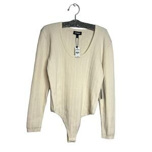 NWT Express cableknit sweater style bodysuit cream Sz XL