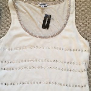 NWT Express tank top with beading on the front and metallic neckline. Long enough to wear with leggings.