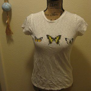 NWT Express white graphic tee top shirt size XS extra small. Front has butterfly graphic. Lightweight, breezy material. Original price: $29.90