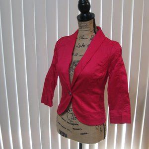NWT Express hot pink blazer suit suiting jacket size 0 XS extra small. Silver single button closure. Slightly slick material feels like a crisp poplin. Three-quarter ¾ length sleeves. This style runs big and fits more like an Express size 2. This is early 2000s Y2K vintage. Brand new, never worn. Original price: $79.90