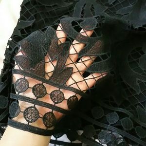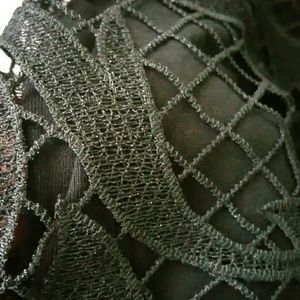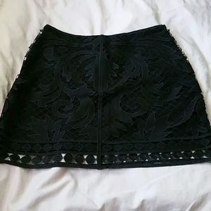 New with tags Express lace overlay skirt. Has two layers for modesty. Color is black with a slight metallic sheen that's hard to photograph. I tried to show it in the 4th picture. Has side zipper. Size 8. No snags or stains.