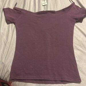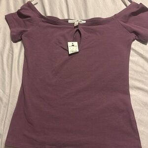 Express One Eleven off the shoulder keyhole tee top. Signature softness sets this tee apart. With a flirty off-the-shoulder style and an eye-catching keyhole, you're ready to face any casual occasion in style. purple. Off-the-shoulder neckline Keyhole front Abbreviated length Cotton/Spandex Machine wash