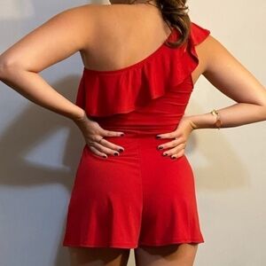 Express one shoulder romper. Size SP. Rad. Stretchy New with a tag. Approx measurements laying flat: