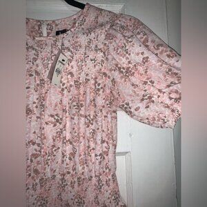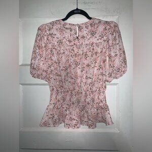 NWT Express pink floral print peplum blouse with puffy sleeves size XS