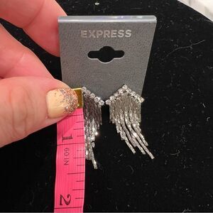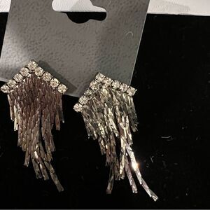 NWT earrings from Express. The rhinestones are stunning and dangling from them are a shiny gunmetal fringe. Please see pictures for more details