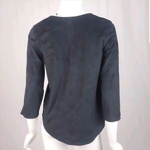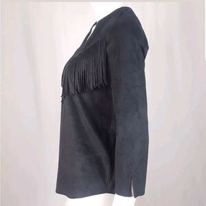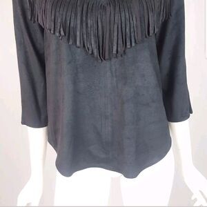NWT Express Women Size Small Black Faux Suede Fringe 3/4 Sleeve Top Boho Festival