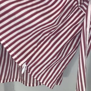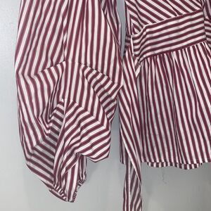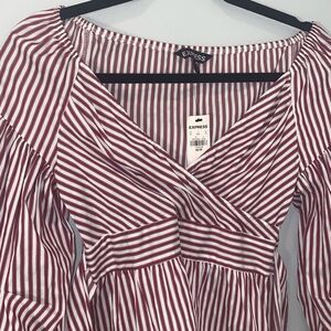 NWT Express Women's Preppy Striped Wrap Blouse Puffed Sleeves Top Red White XS
