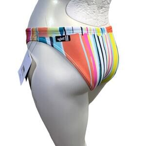 Brand-new with tags (NWT) Dolfin Uglies reversible swim bottoms in size XS. These versatile swim bottoms feature a fun, multicolor striped design on one side and a solid color on the other, offering two looks in one. Perfect for mixing and matching with your favorite swim tops, they are both functional and stylish.