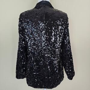 Extrovert, Sequin Blazer, Black Sequin, NWT, Single Breasted, Satin Trim, Party Blazer, Holiday Jacket, Disco, Glam, Sparkle, Evening Wear, Statement, Women's, Size S, Machine Washable.