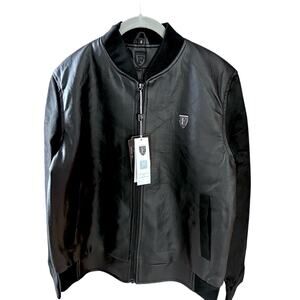 NWT Italy F - COLLECTION black leather women's baseball style jacket
