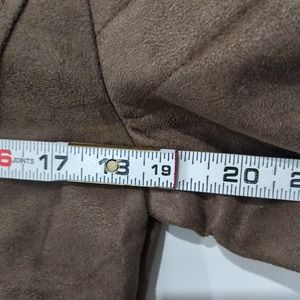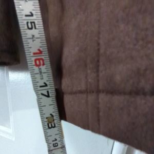 New With Tag, F Collection, Ferrari, Vegan Leather, Brown Hooded Bomber Jacket. It is a Women's Size Large. Two front slant zipper closure pockets. Pull tight hood. Zipper closure. Quilted accents. Darts to flatter your figure. All tags including serial number attached. Banded waist band and cuffs.