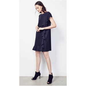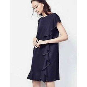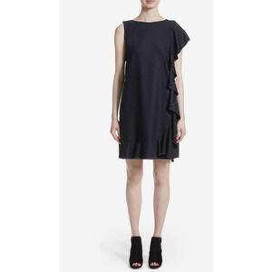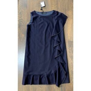 NWT FABIANA FILIPPI Navy Blue Stretch Cashmere Wool Asymmetrical Ruffle Dress