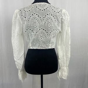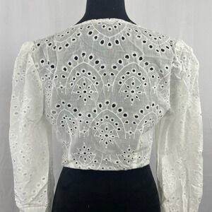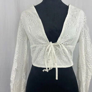 NWT FABONICS White Cotton Louisa Eyelet Tie-front Cropped Top