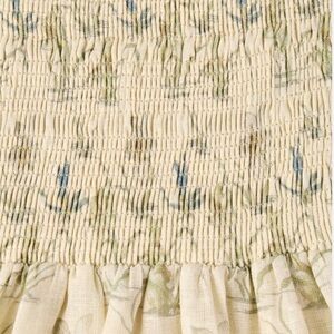 A summer-inspired mini dress with pull-on pull-off apeal. It features a straight neckline with thin straps, adjustable in length, and a shirred bodice. It then leads into a gathered waist and a soft A-line skirt. Designed from a signature 100% European Flax® linen fabrication in a warm, creamy yellow colourway with vintage-inspired florals, wear with a simple sandal on vacation.