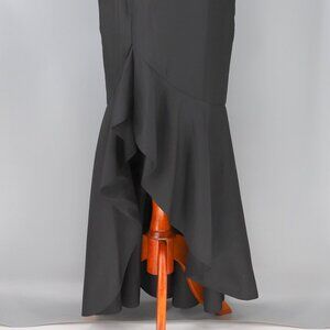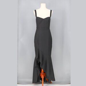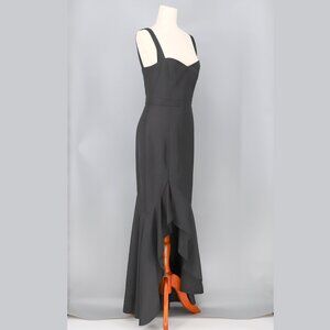 NWT FAME and PARTNERS The Bromley Gown Dress in Black Ruffle Slit Front Size 6