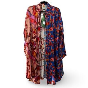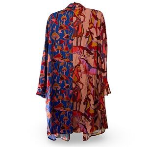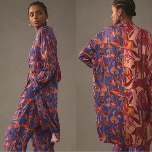 NWT FARM RIO Anthropologie Mushroom Sketch Blue Long Button Down Sz M