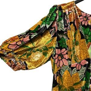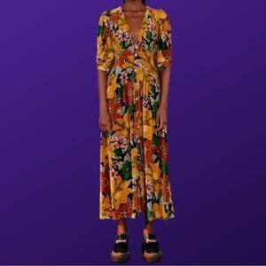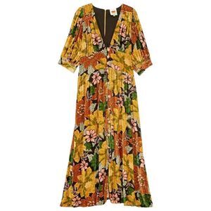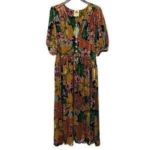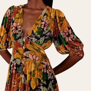 NWT FARM RIO Black Garden Floral V-Neck Velvet Midi Dress L
