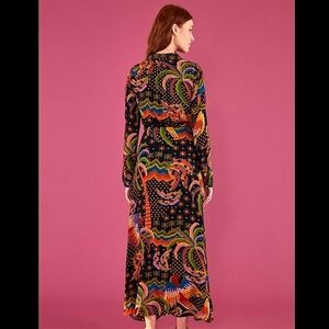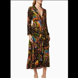 Absolutely gorgeous! Beautiful colors and print pattern on this maxi wrap long sleeve island dress from Farm Rio.