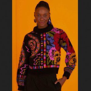 NWT! FARM RIO Mixed Scarves Black Sweater M