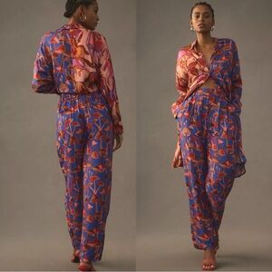 NWT FARM RIO Mushroom Sketch Blue Pants Sz L