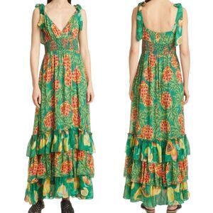 NWT FARM RIO Pineapple Galore Smocked Waist Maxi Dress L