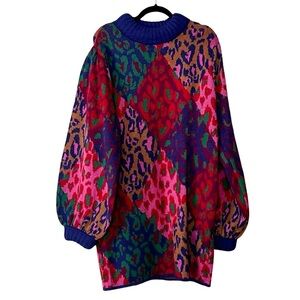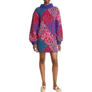 NWT FARM RIO Pop Leopard Print Colorful Long Sleeve Sweater Dress Sz M