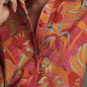 NWT FARM RIO X ANTHROPOLOGIE WOMENS LONG SLEEVE COLLARED ROMPER TROPICAL MEDIUM