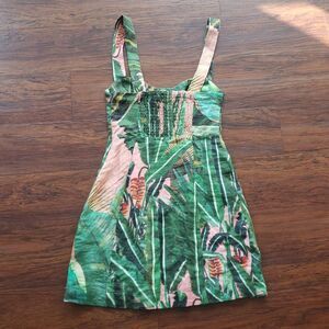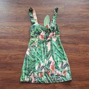 NWT FARM Rio 100% Linen Tropical Chic Trendy Amazonia Forest Lined Mini Dress Size XS
