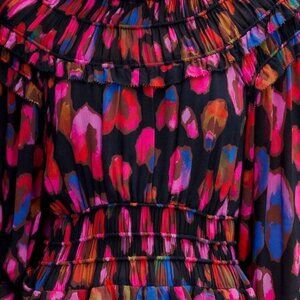 NWT FARM Rio Black Iridescent Leopards Ruffle Mini Dress l Size XS