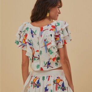 NWT FARM Rio Crotchet Parrot Ruffle Crop Top