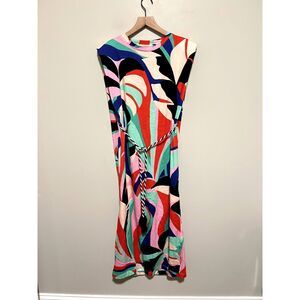 NWT FARM Rio Monstera T-Shirt Dress Midi Sundress in Colorful Monstera Pink XS