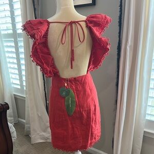 NWT - FARM Rio Red Ruched Mini Sundress
