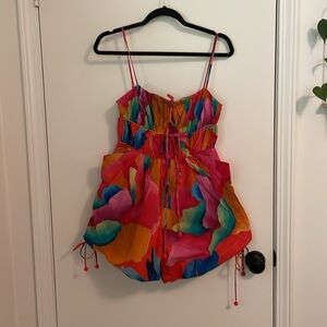 Add a burst of color to your wardrobe with this stunning Farm Rio romper, perfect for your next getaway! Featuring a vibrant tropical print, this piece is designed with adjustable straps for a customizable fit and convenient pockets for functionality without sacrificing style. Ideal for warm weather adventures, beach days, or sipping cocktails by the pool.