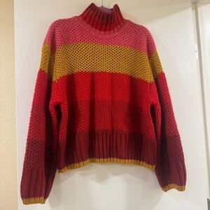 NWT FARM Rio Shiny Stripe Colorblock Turtleneck Sweater RED MULTI Medium $210