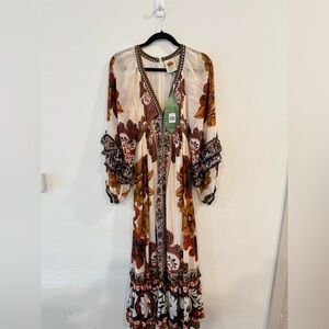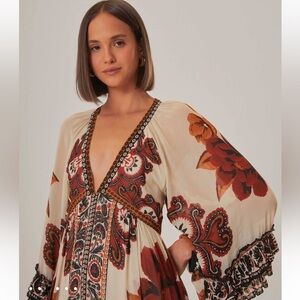 NWT FARM Rio V-Neck Gown with Bishop Sleeves