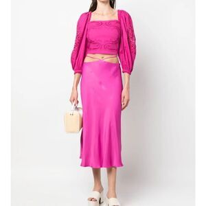 NWT FARM Rio strap-detail satin-finish midi skirt Large