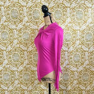FARM Rio twist detail cutout long sleeve bodysuit in bright pink. Size M. New with tags. Retail $115.