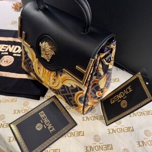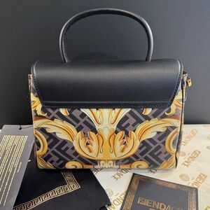 NWT FENDACE LA MEDUSA MEDIUM PRINT HANDBAG PURSE VERSACE X FENDI