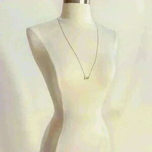 NWT FENDI Baguette Emerald Green Stone & Gold Logo Long Necklace