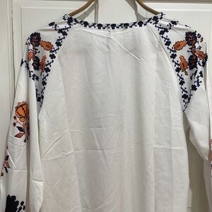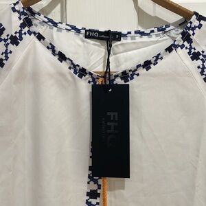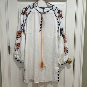 NWT FHQ Collection || Balloon Sleeve Peasant Cross-Stitch Print Cotton Dress