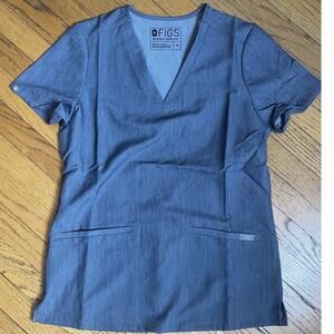 NWT FIGS Casma 3-pocket Scrub Top in Heather Denim Size XS X-Small