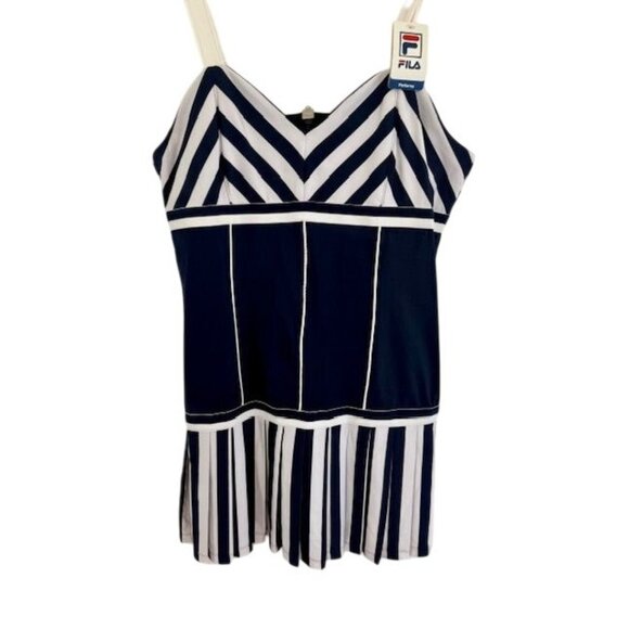 NWT FILA Heritage XL Navy White Mitered Stripe Tennis Dress Iconic Ginny Hilfige