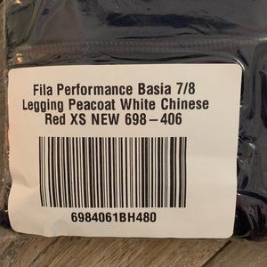 NWT (NEW IN BAG) FILA PERFORMANCE BASIA 7/8 LEGGINGS PEACOAT COLORS WHITE/CHINESE RED SIZE XS.