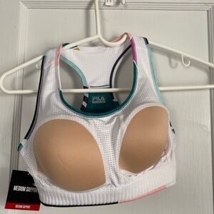 Work up a sweat in this sport bra with lightly padded cups, racerback with keyhole accent, scoop neck, breathable mesh sneers. perfect for medium impact exercise.
